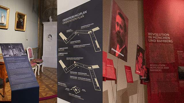 Altes Schloss Herrenchiemsee, Bergbau- und Industriemuseum Ostbayern, Bayerische Verwaltung der staatlichen Schlösser, Gärten und Seen, NS-Dokumentationszentrum München, Freilandmuseum Bad Windsheim, Museen der Stadt Nürnberg, Dürer-Haus, Tucherschloss Nürnberg, Spielzeugmuseum, Neues Museum - Staatliches Museum für Kunst und Design, Burg Burghausen, Neue Residenz Bamberg, Oberpfälzer Volkskundemuseum, Schloß Seehof, Stadtmuseum Fürth, Synagoge Ermreuth, Burg Cadolzburg, Oberhausmuseum Passau, Museum 22/20/18 Kühnertsgasse Nürnberg, Burg Lauenstein, Residenz München, Neues Schloss Bayreuth, Märklineum Göppingen